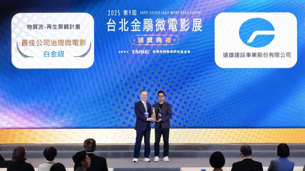 廢建材化身創意景觀 遠雄建設微電影喜獲金鵰肯定 遠雄建設今天在2025第9屆台北金鵰微電影展,以「物質流 – 再生景觀計畫」影片,獲選最佳公司治理微電影 – 白金級殊榮。不只象徵遠雄建設帶領產業,邁向低碳營建與循環經濟的新時代,更展現在公司治理與創新上的卓越表現。
