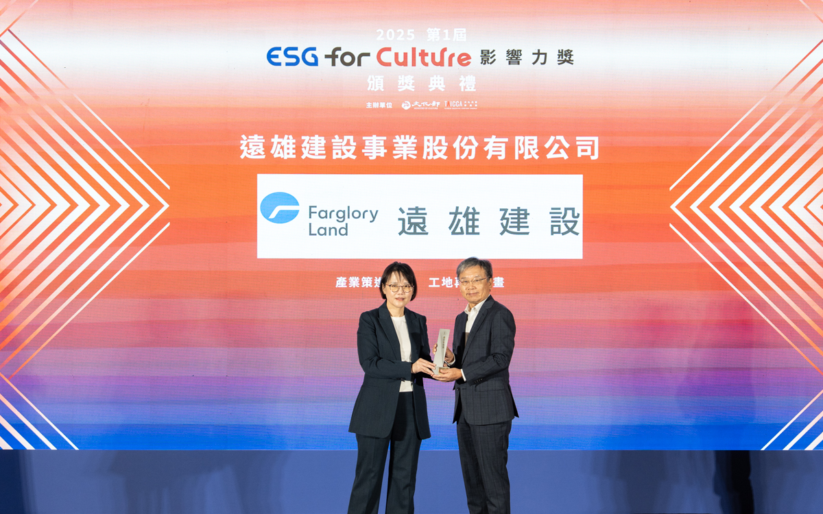 遠雄建設以「工地再生計畫」,獲得台灣文化內容策進院所舉辦的「ESG for Culture 影響力獎」中脫穎而出,勇奪極具指標性的「產業策進獎」。不僅肯定了遠雄建設在環境永續上的創新實踐,更是營建產業的「硬體廢棄物」與文化設計產業「軟性實力」的首次交會,開創跨界永續合作新典範。